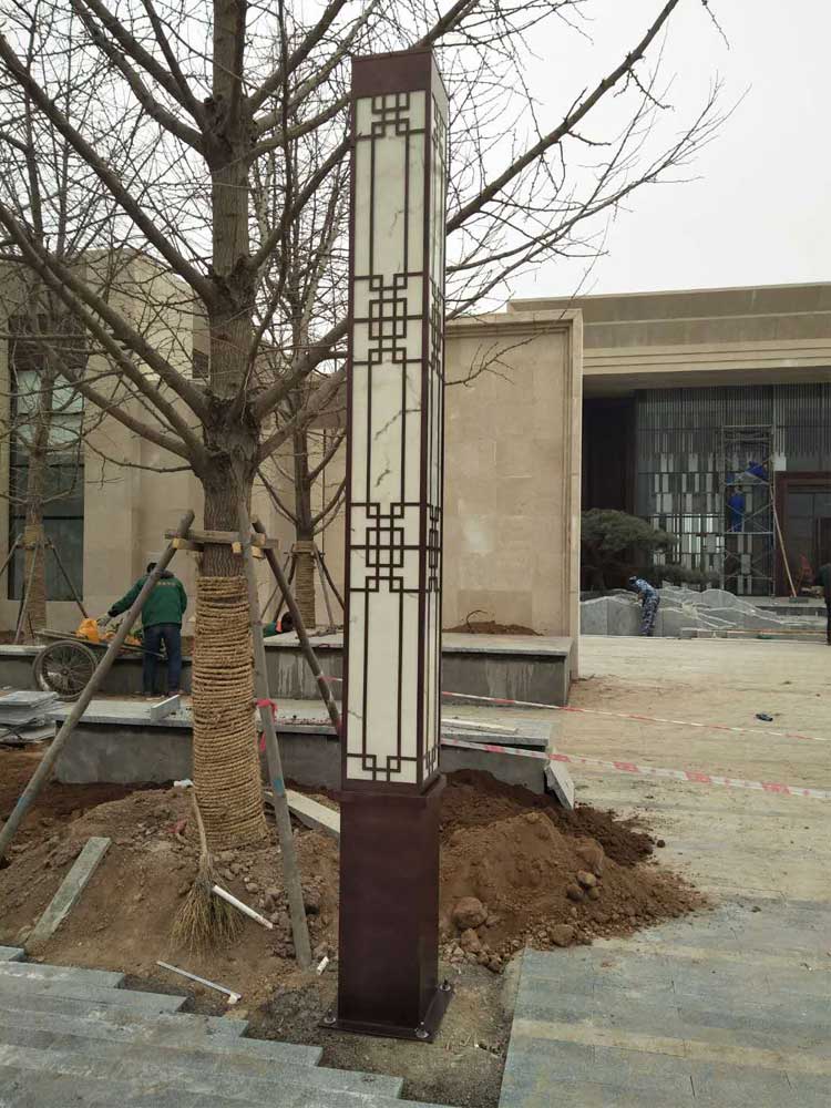 寶雞花旗集團庭院方燈,該項目主要采用的是我公司自己設計生產的庭院燈草坪燈。顏色外觀采用激光切割板材與亞克力板組成,造型簡單大方,顏色深淺搭配柔和,夜間亮燈,散發出暖色燈光。