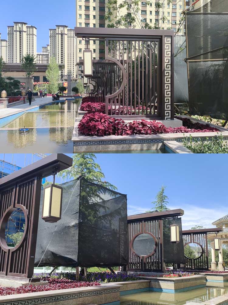 甘肅平涼世紀花園特色景觀宮燈項目,按照地產商提供圖紙定制生產,造型結合小區(qū)特色,采用造型+照明的裝飾效果,既美化小區(qū)又能夠突出照明特點,倆者相輔相成。