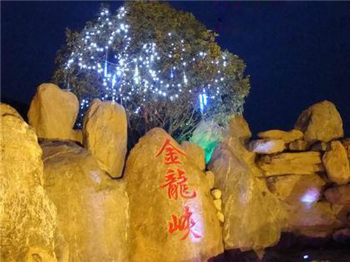 簡(jiǎn)介—— 陜西蘭光戶外照明有限公司為西安市金龍峽景區(qū)設(shè)計(jì)安裝的噴泉亮化工程效果展示照片
