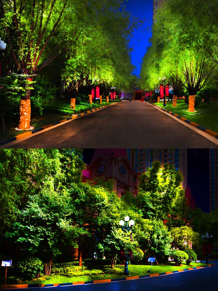 帝景小區(qū)廣場亮化,帝景地處未央路地理位置優(yōu)越,是西安市未央?yún)^(qū)太華北路的商業(yè)繁華地段,環(huán)境優(yōu)美、交通便利。在繁華的城市中創(chuàng)造出一片公園亮點,色彩斑斕,冷暖結(jié)合,讓城市夜景的魅力得以顯現(xiàn),提升綠色城市,低碳生活的城市形象的同時,也提高了使用舒適度和照明外在的景觀美感。