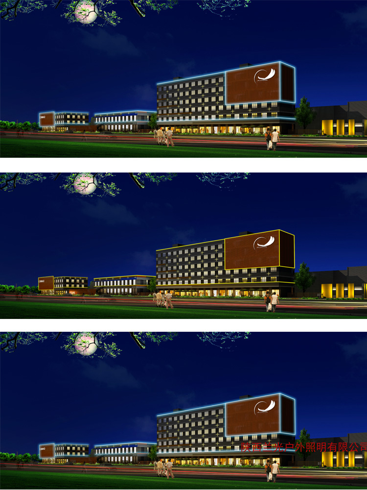 菜鳥亮化項目是我公司和阿里巴巴西安菜鳥公司溝通,做的初步設(shè)計效果圖,結(jié)合菜鳥配送中心的功能性,在主樓體做發(fā)光亮化效果,主要采用線條燈勾勒,點光源點綴效果,到達(dá)客戶需求的亮化效果。